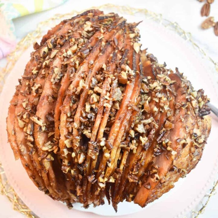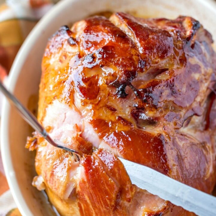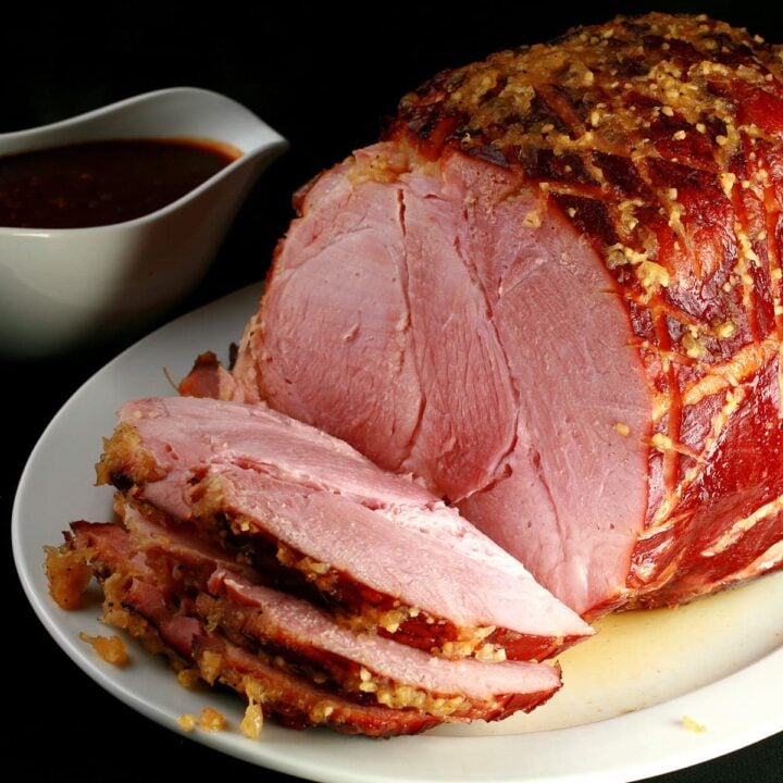 Use a spiral ham for this delicious Bourbon Glazed Ham recipe. It’s sweet with a brown sugar texture and it’s always moist.