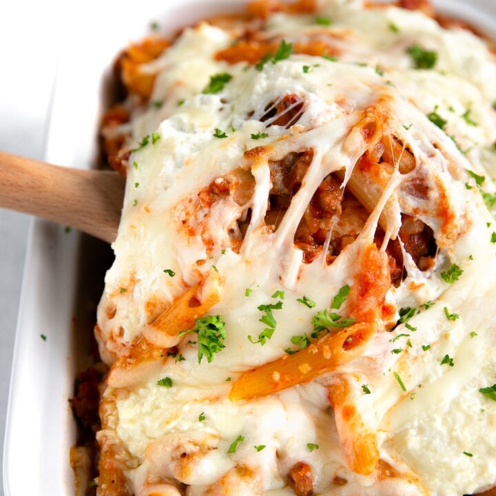 When it comes to comfort food, Italian dishes rank number one in our household. They can be made ahead of time, and baked later. You can freeze them in single servings and have them any day of the week.