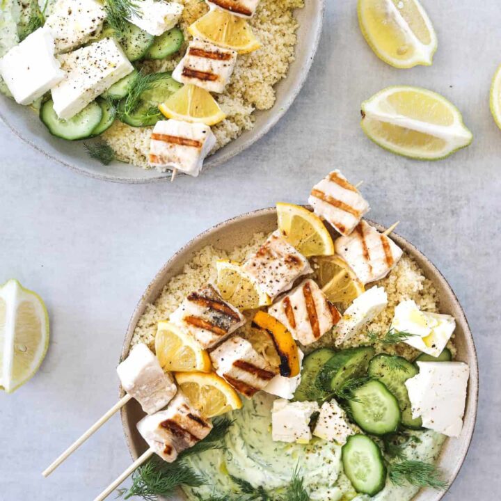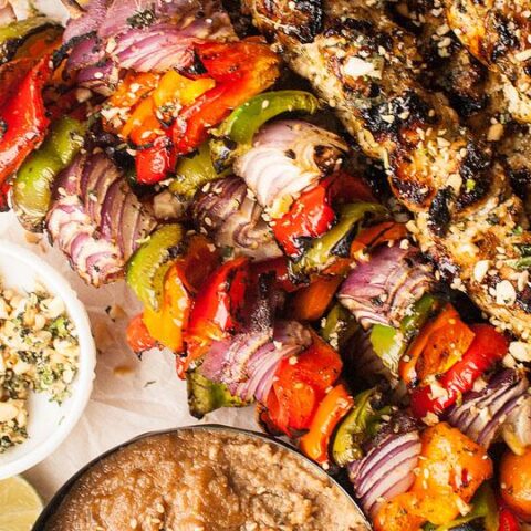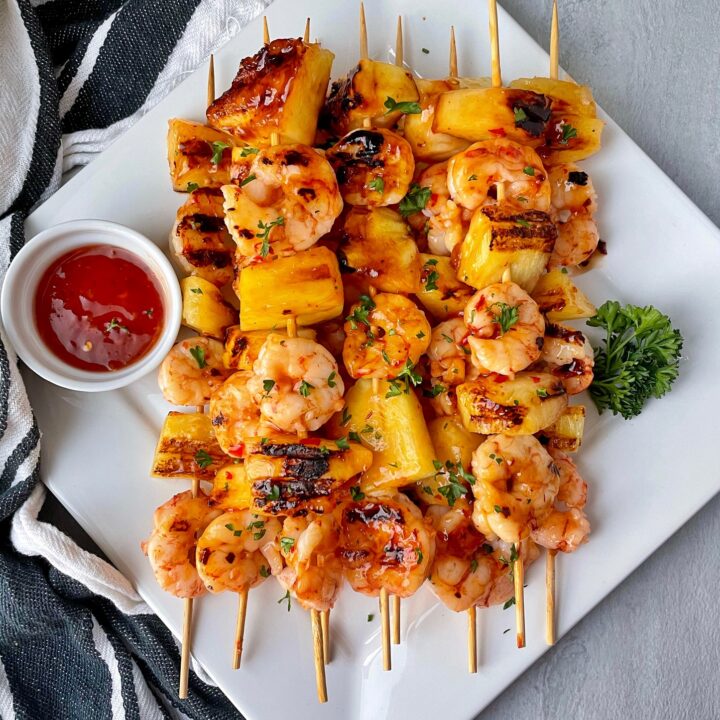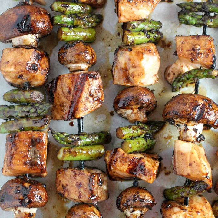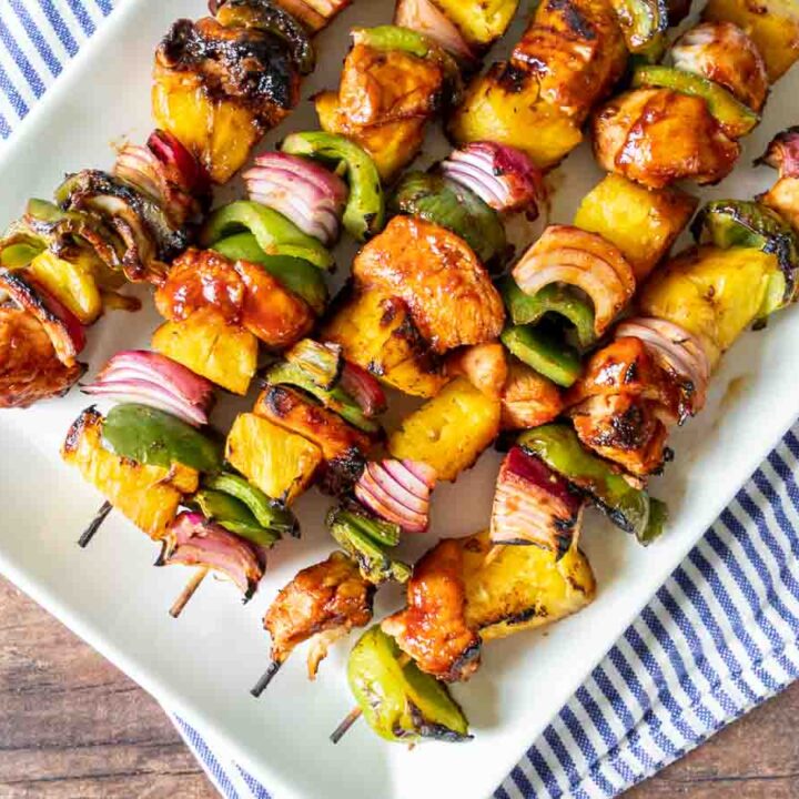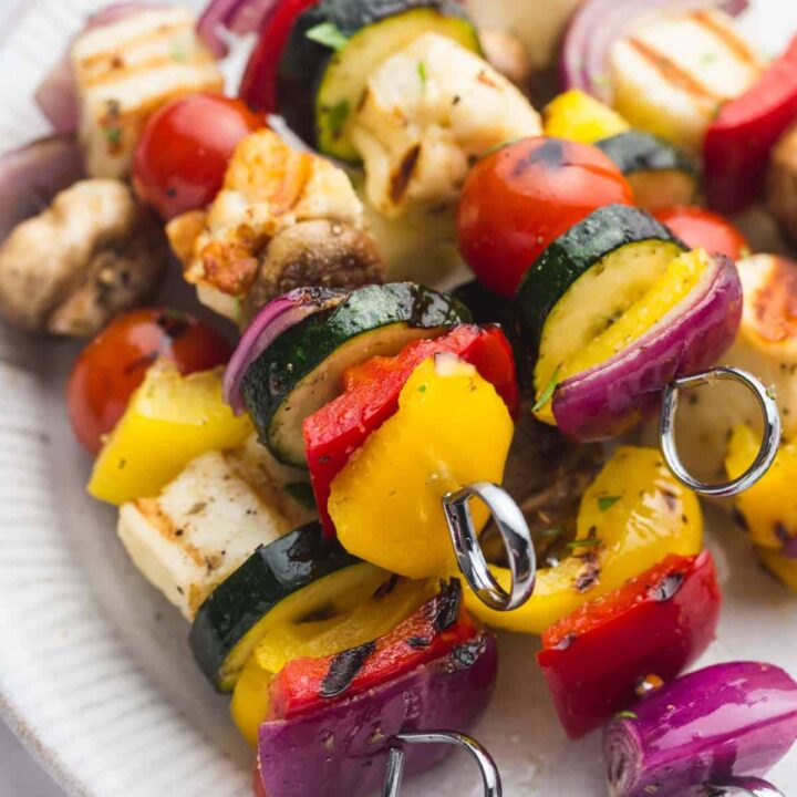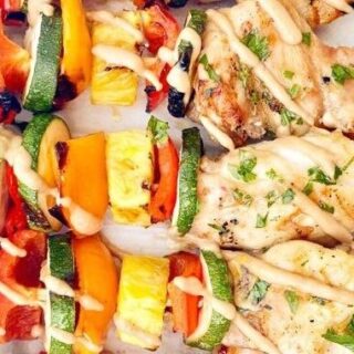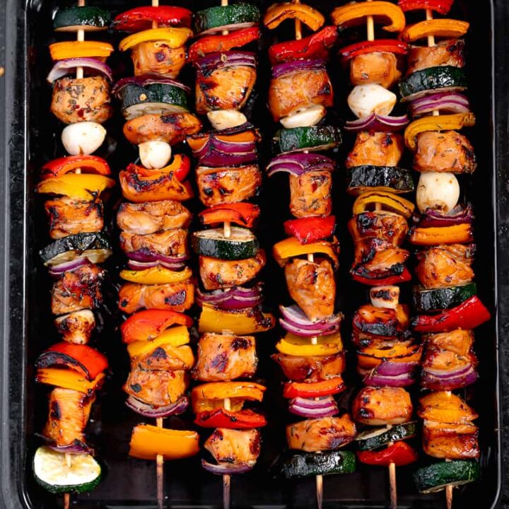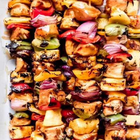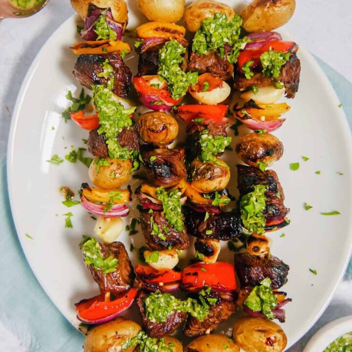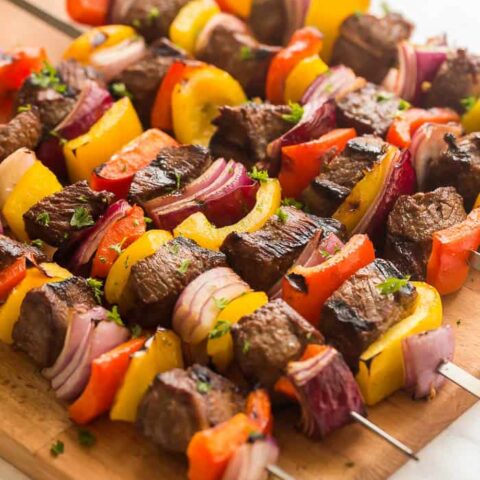 I tried to list a kabob type for every meat and flavor combo from some of the best recipe bloggers on the internet! I included the normal chicken and steak, but also shrimp, sausage, pork, veggie, tofu, lamb, and fish!