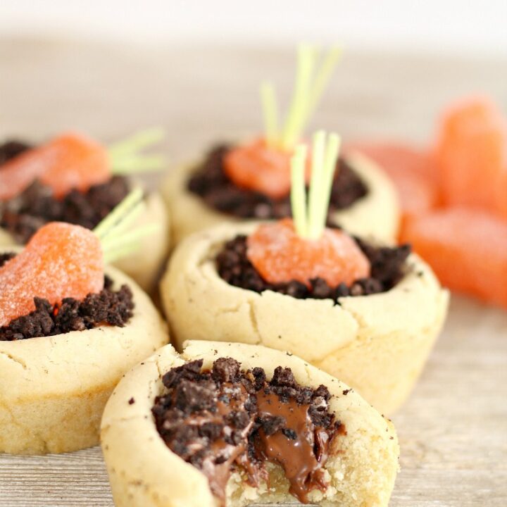 Cookie cups that look like a carrot patch are perfect for sharing at Easter. They look adorable and taste amazing!