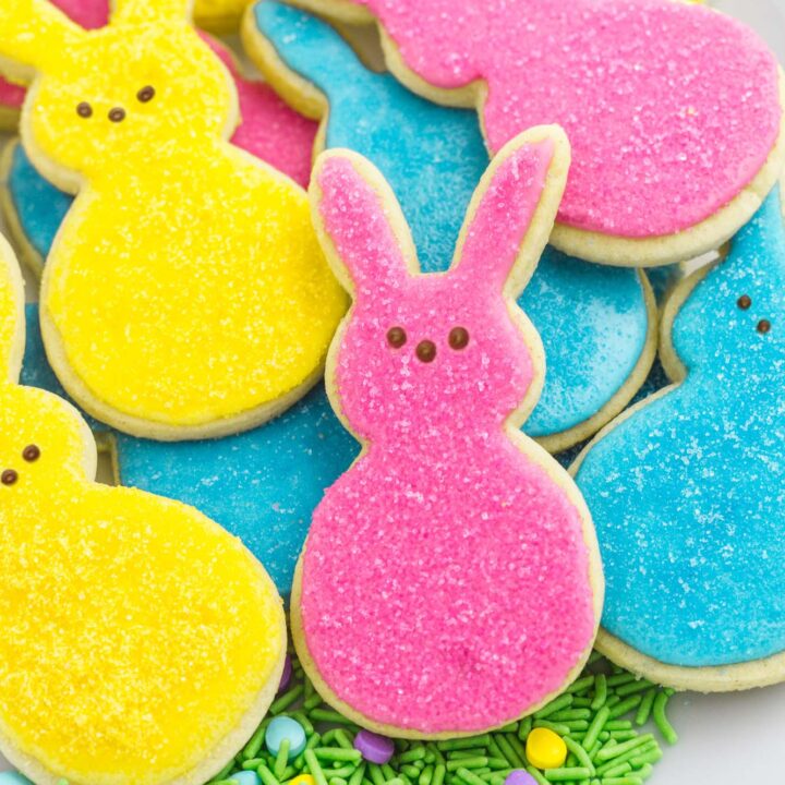 Skip the store-bought cookies and make the cutest Easter cookies decorated like bunny butts, Peeps, carrots and chicks for your family this year! Perfect for parties and other celebrations. For more Easter recipes see my Easter page.