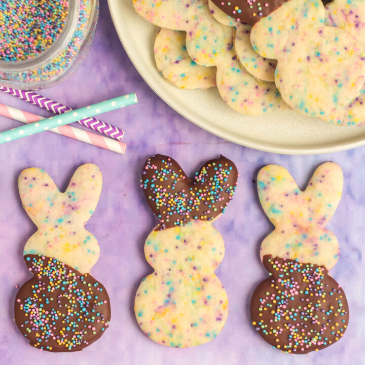 Dip your easter bunny cookies into chocolate for the most indulgent way to share Easter cheer yet!