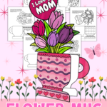 It’s more than just a card; it’s a whole little experience. Kids get to color the mug and the flowers, cut everything out, and assemble their own bouquet right inside the cup. It’s like giving flowers for mom on Mother’s Day, but with that extra handmade touch that makes it feel so special (and way more memorable than store-bought).