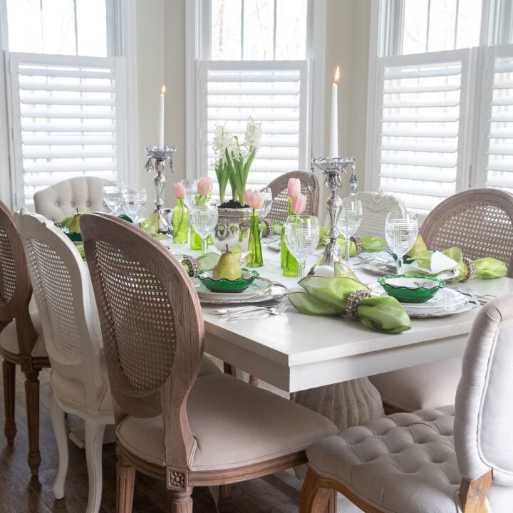 Looking for ideas for St. Patrick's Day decor? Here’s a pretty spring tablescape that's perfect for a St. Patrick’s Day celebration.
