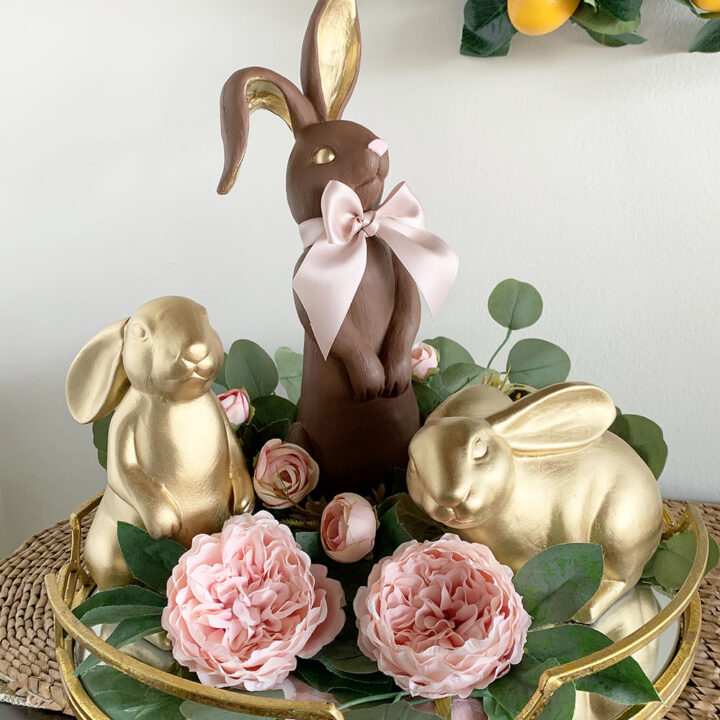 Looking for a fun craft for your Easter table this year? This easy Faux Chocolate Bunny Figurine! Adding a pretty bow makes this guy the center of attention!