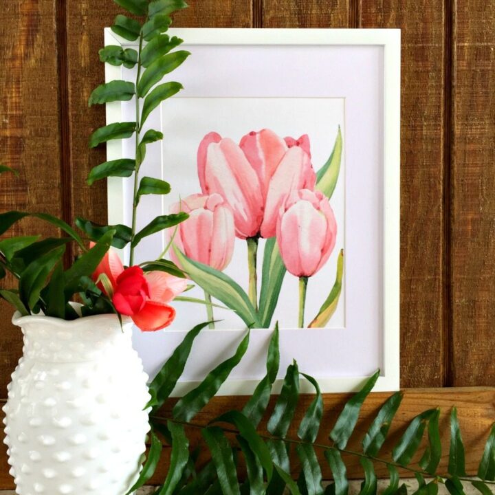 Watercolor tulips wall art for spring decorating around the home.