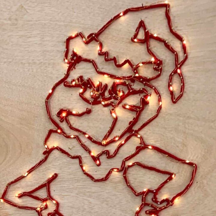 Create an adorable string art in the likeness of the Grinch with this fun tutorial!