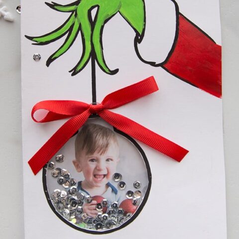 This is such a fun way to add a touch of Grinch goodness to your tree with this grinch hand ornament DIY.