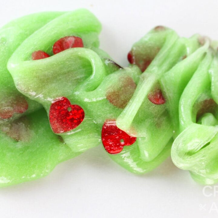 Stretchy, slimy, grinchy fun awaits with this homemade slime recipe. This would be fun to share with the kids at school!