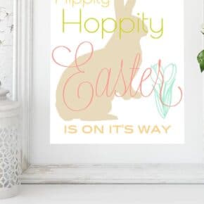 Celebrate Easter with this cheerful “Hippity Hoppity” Easter bunny printable you can frame in minutes. It’s an easy, stylish way to brighten your home for spring. For more Easter ideas, see my Easter page.