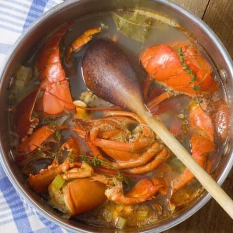 Lobster stock recipe with anise, peppercorns and herbs. Great for making lobster bisque, or other soups and stews.