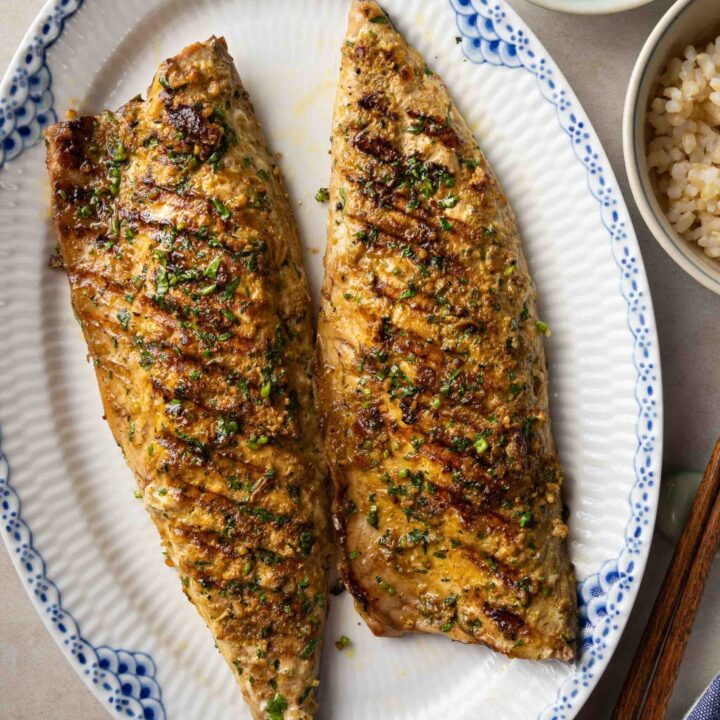 There are countless ways of seasoning or marinating salmon to make it even more flavorful before cooking. We love Trader Joes Soyaki Sauce to marinade the fillets and as a sauce to pour over it when it is plated.