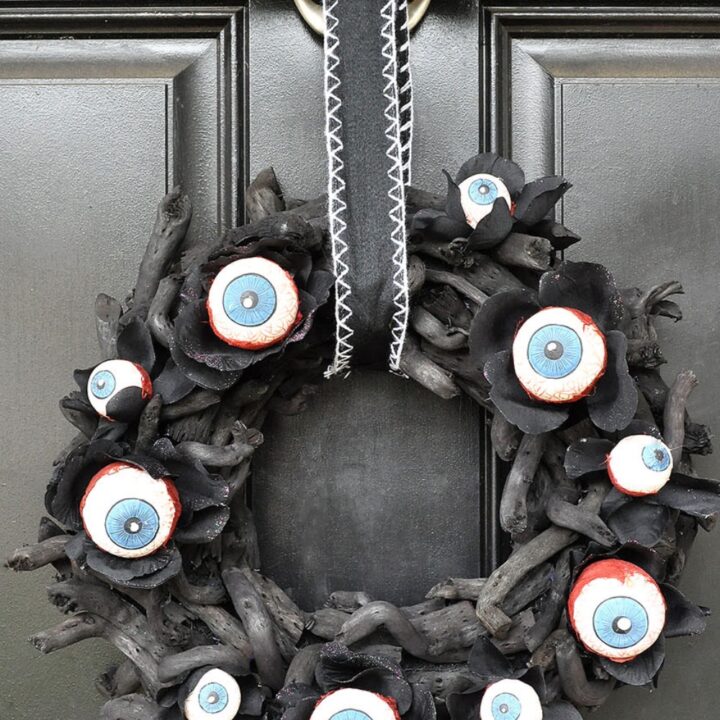 And that’s it! Super easy crows nest wreath and a fun way bring some spooky elegance to your home this Halloween!