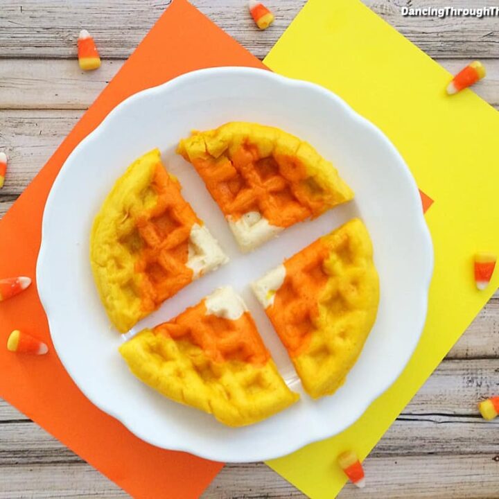 Halloween Waffles (That Look Like Candy Corn!)