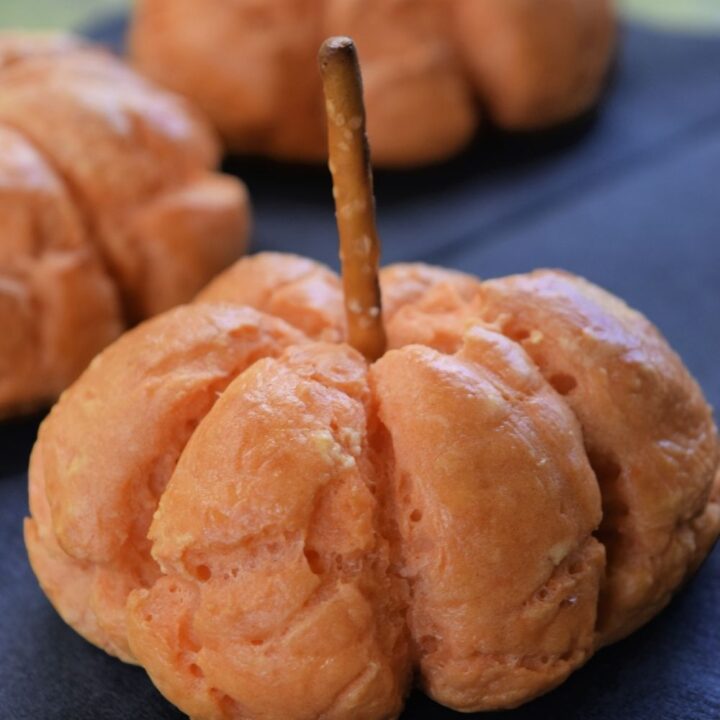 Easy 2 ingredient dough bagel recipe shaped like pumpkins!