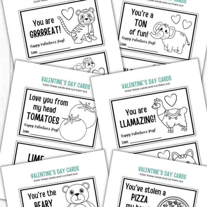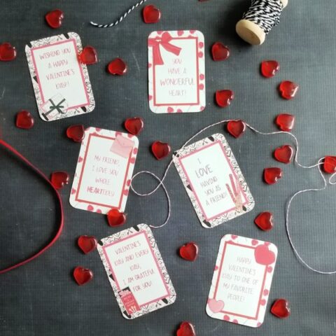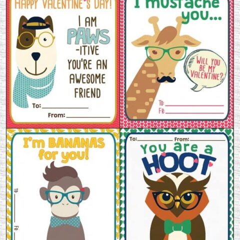 Printable Valentines are an excellent budget-friendly way to send out classroom Valentines or any other last minute gift. With a few simple supplies from around the house and some free printable templates, you can make your own personalized Valentine cards with your children or grandchildren in just a few minutes. Enjoy!
