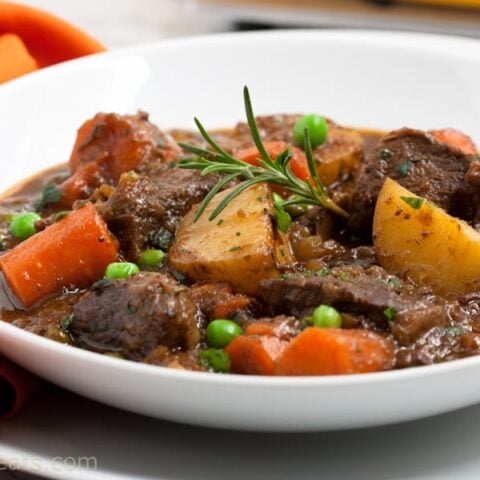 Guinness Beef Stew with vegetables is slow-cooked for a hearty meal, the perfect traditional St Patrick’s Day meal!