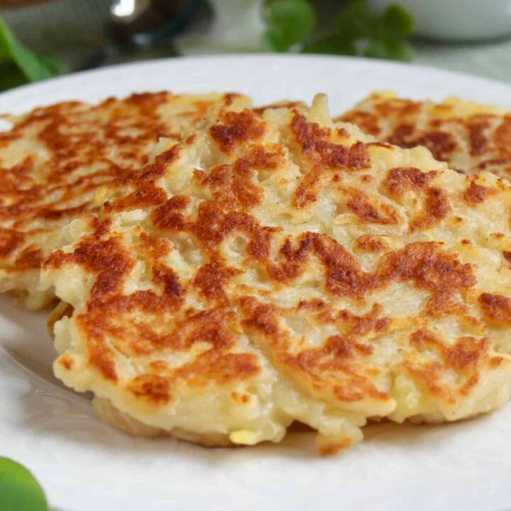 Irish Boxty are eaten for breakfast, lunch, and dinner in Ireland. Hearty potato pancakes can be eaten plain, or as a base to make a complete and delicious dinner!