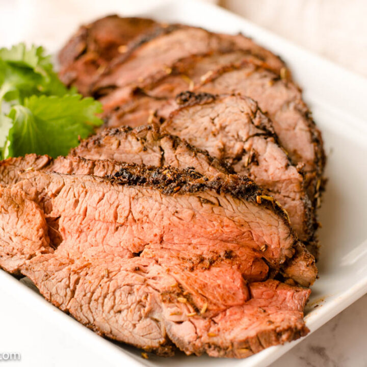 Roasted boneless leg of lamb recipe that is juicy and flavorful, with simple ingredients like olive oil, garlic, herbs, and lemon.