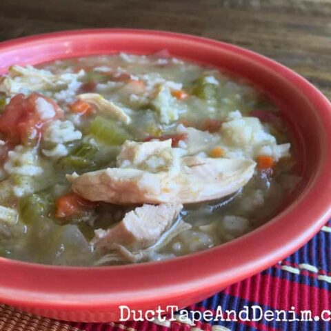 This chicken enchilada soup with rice recipe was inspired by leftovers! Quick and easy yet a very filling meal on a cold weeknight.