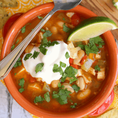 An easy, healthy, delicious dinner that's ready in under 30 minutes! Made with chicken, beans and peppers along with fresh lime juice and cilantro, this chili is fabulous!