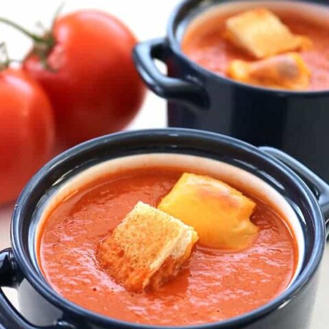 My Quick & Easy Creamy Tomato Soup with Grilled Cheese Croutons will be a perfect lunch or dinner this winter. You can have everything ready and on