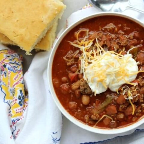 This delicious sausage and turkey chili recipe comes together quickly and simmers in the slow cooker until dinnertime!